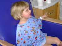 Last Monday, April 2 my sweet little daughter Isabelle got sent to the hospital. She was diagnosed with Type 1 Diabetes. Totally threw me for a loop. I took her to the pediatrician because she was peeing all the time and really thirsty. She had what we thought was the stomach flu and I just thought that she was dehydrated. While we were at the peds they did a blood test and the doctor came back in and told me that she had Diabetes and that I had to take her to the emergency room at the children's hospital. He said that we would be there for at least 2 days so that we could learn to take care of Izzy. I called my Mom first thing and told her that I needed her to come over asap. Then I called my hubby and told him to meet us at the hospital. We were crazy. Alex was sick with throwing up and diarrhea so I couldn't ask any of my mommy friends to keep him so we had to take him to the hospital with us. We got to the hospital a little before 5:00 and we were finally put in a room a little after 8:00. Thomas was about to go home with Alex when my Mom showed up. Isabelle was so excited to see her Meme that it really helped her to not be so freaked out.
